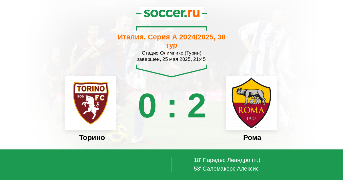 Торино - Рома: обзор матча 25 мая 2025