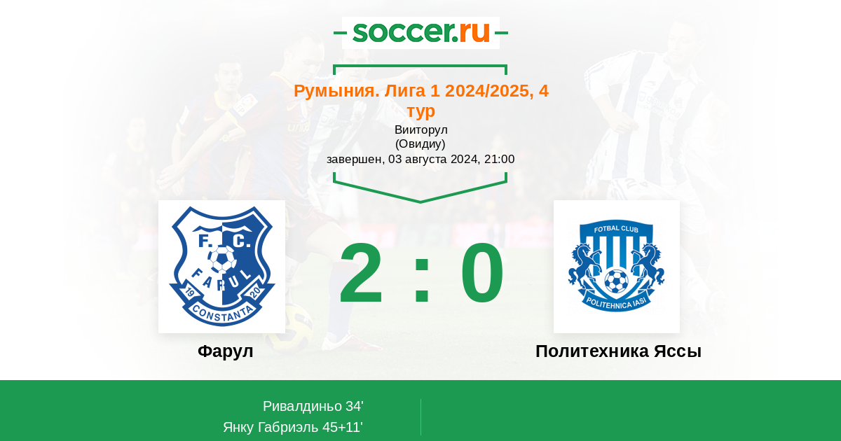 Фарул - Политехника Яссы: обзор матча 3 августа 2024