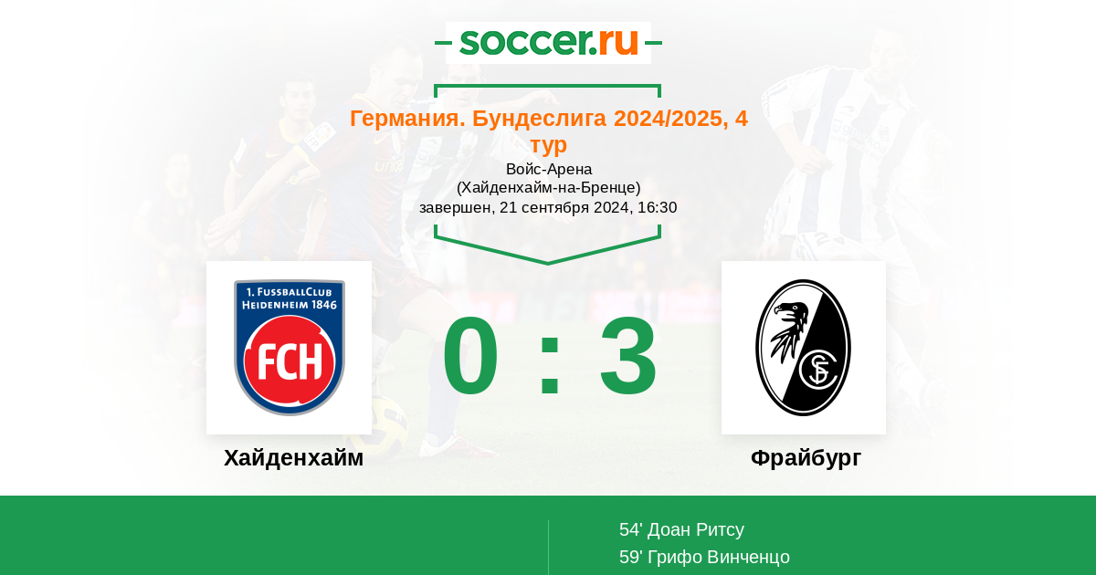 Хайденхайм - Фрайбург: обзор матча 21 сентября 2024