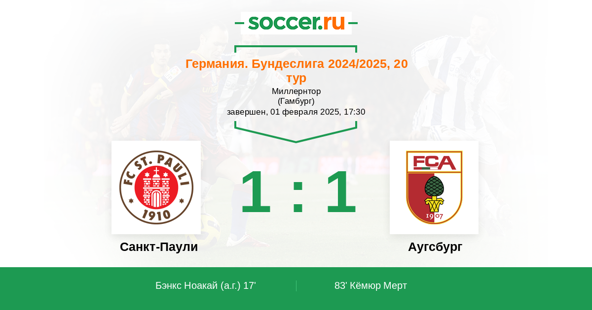 Санкт-Паули - Аугсбург: обзор матча 1 февраля 2025