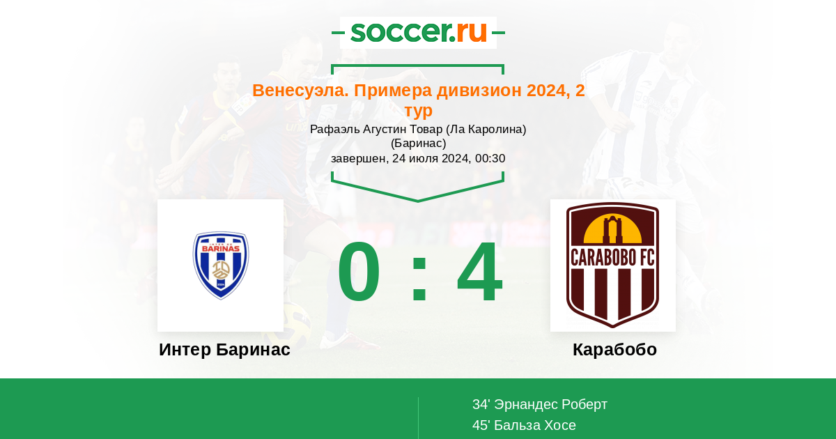 Интер Баринас - Карабобо: обзор матча 24 июля 2024