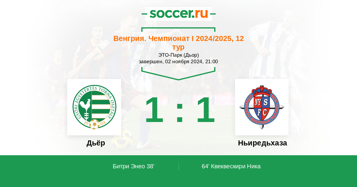 Дьёр - Ньиредьхаза: обзор матча 2 ноября 2024