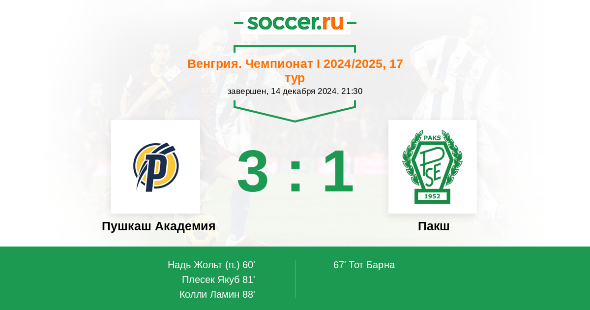 Пушкаш Академия - Пакш: обзор матча 14 декабря 2024