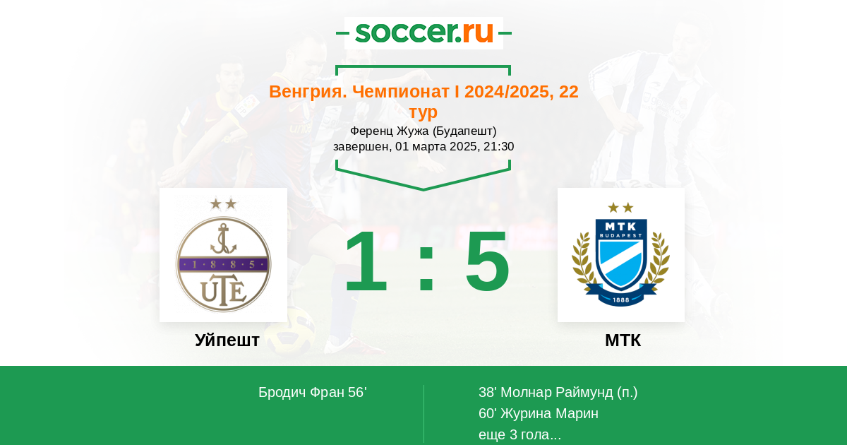 | 7. | Уйпешт | 33 | 9 | 14 | 10 | 11 | 38:44 | 41 |