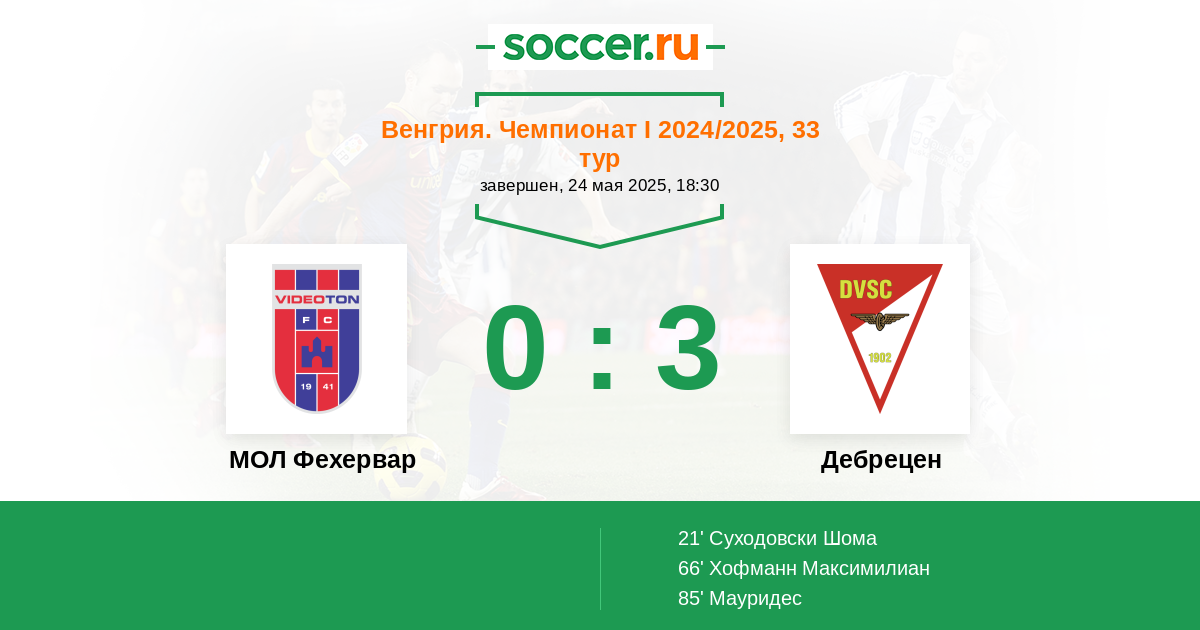 МОЛ Фехервар - Дебрецен: обзор матча 24 мая 2025