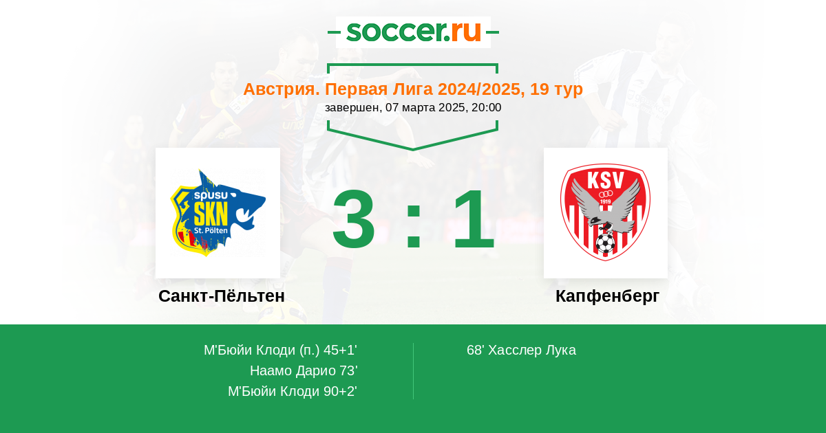 | 4. | Санкт-Пёльтен | 30 | 15 | 8 | 7 | 10 | 56:34 | 53 |