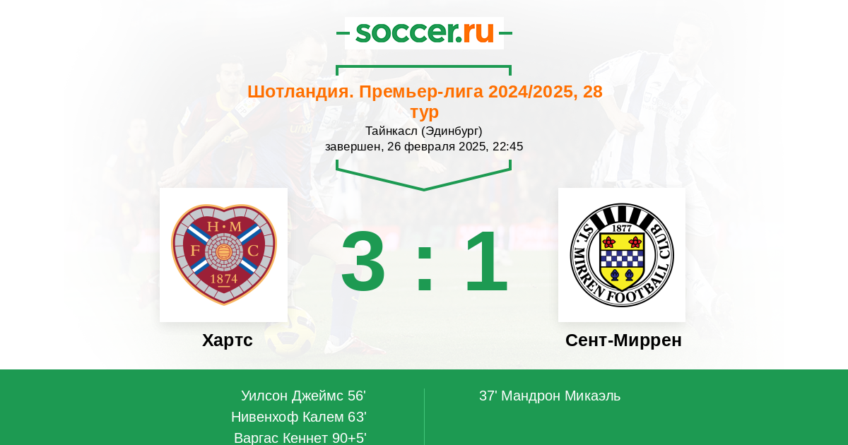 Хартс - Сент-Миррен: обзор матча 26 февраля 2025