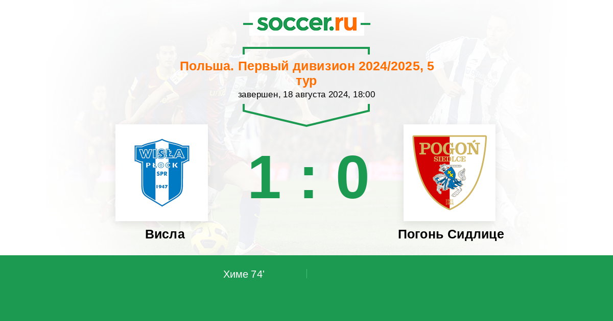 Висла - Погонь Сидлице: обзор матча 18 августа 2024
