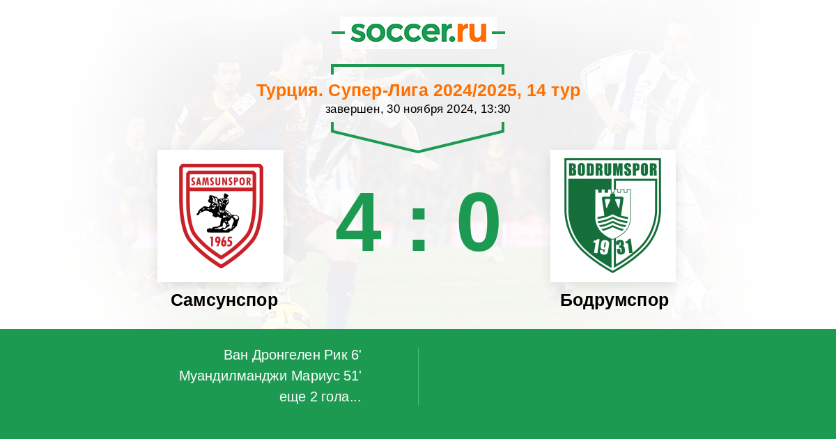 Самсунспор - Бодрумспор: обзор матча 30 ноября 2024