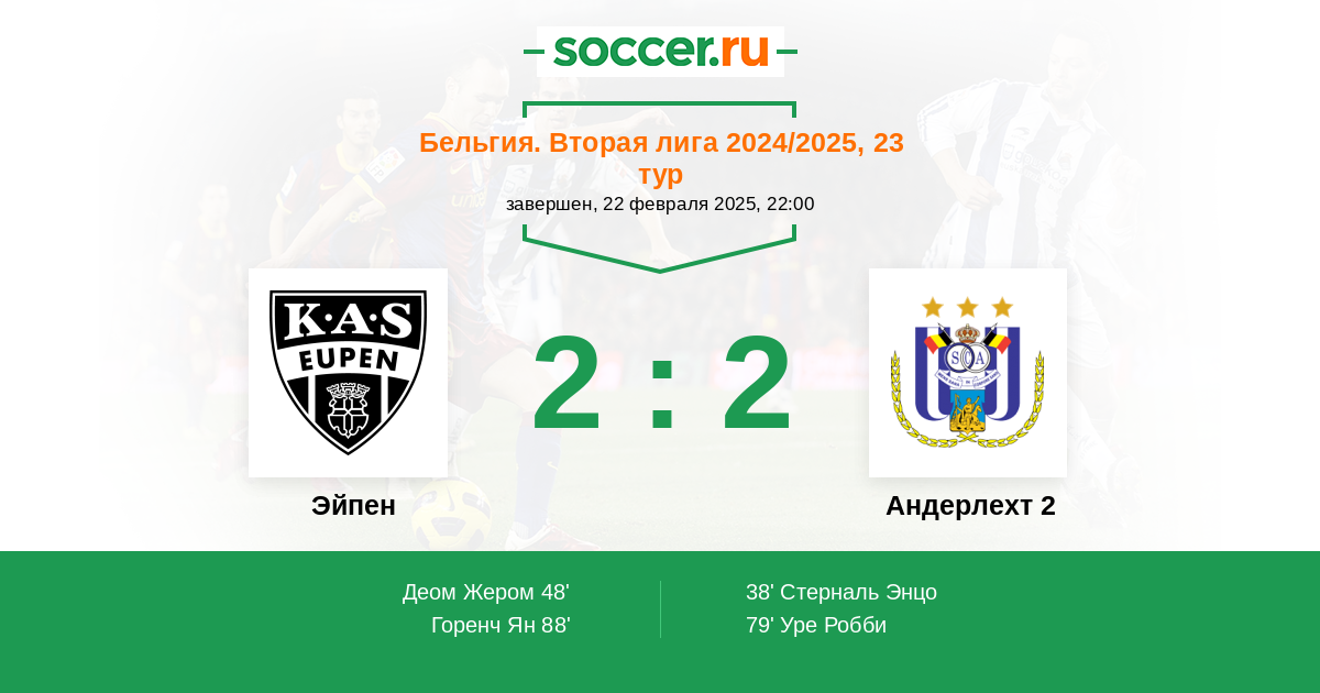 Эйпен - Андерлехт 2: обзор матча 22 февраля 2025