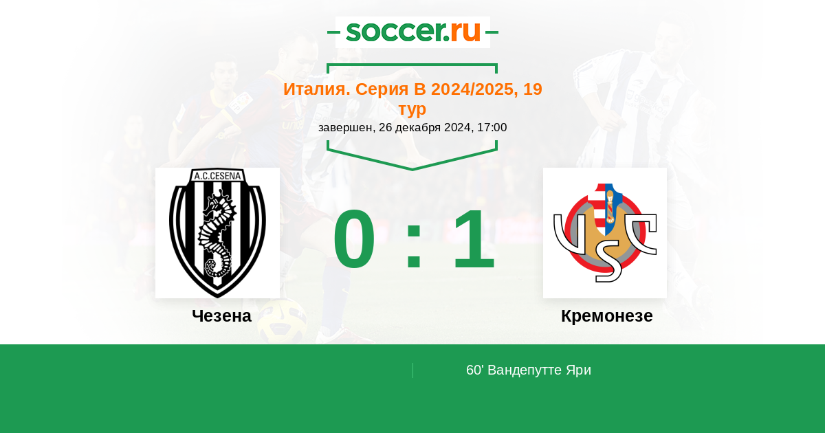 Чезена - Кремонезе: обзор матча 26 декабря 2024