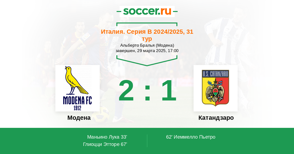 Модена - Катандзаро: обзор матча 29 марта 2025