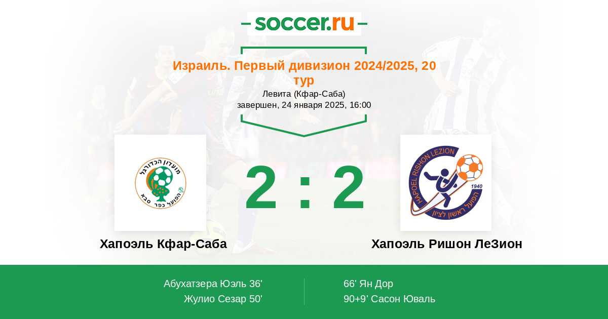 Хапоэль Кфар-Саба - Хапоэль Ришон ЛеЗион: обзор матча 24 января 2025
