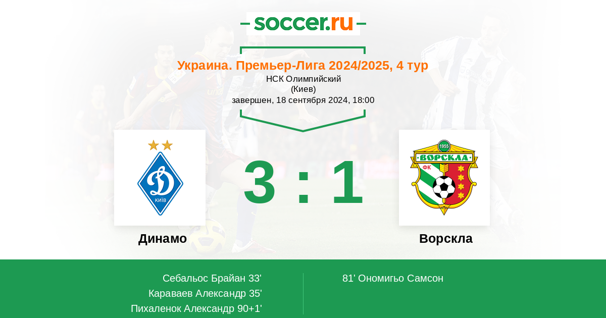 Динамо - Ворскла: обзор матча 18 сентября 2024