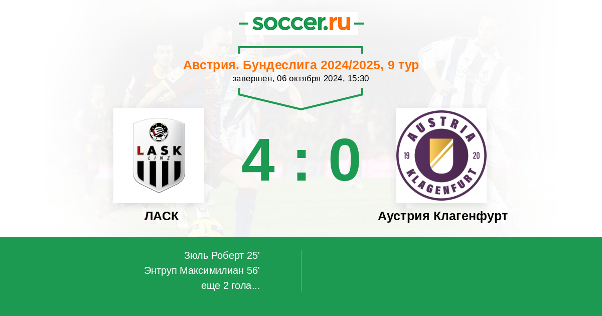 ЛАСК - Аустрия Клагенфурт: обзор матча 6 октября 2024
