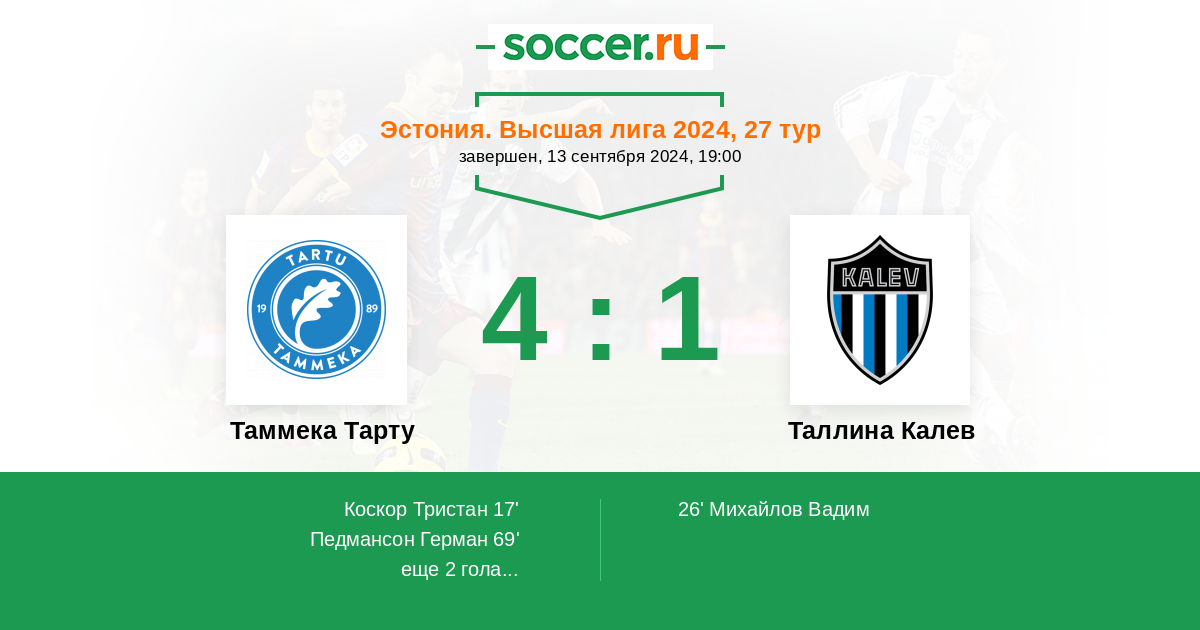 Таммека Тарту - Таллина Калев: обзор матча 13 сентября 2024