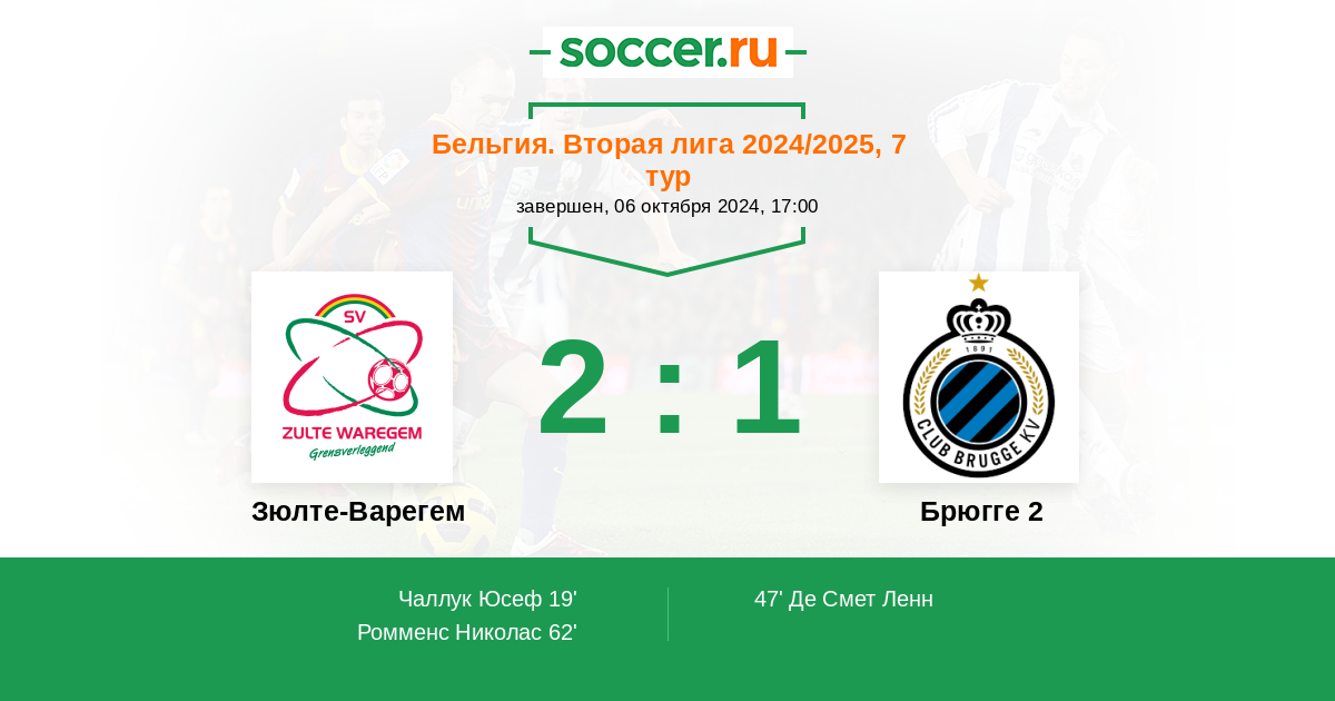Зюлте-Варегем - Брюгге 2: обзор матча 6 октября 2024