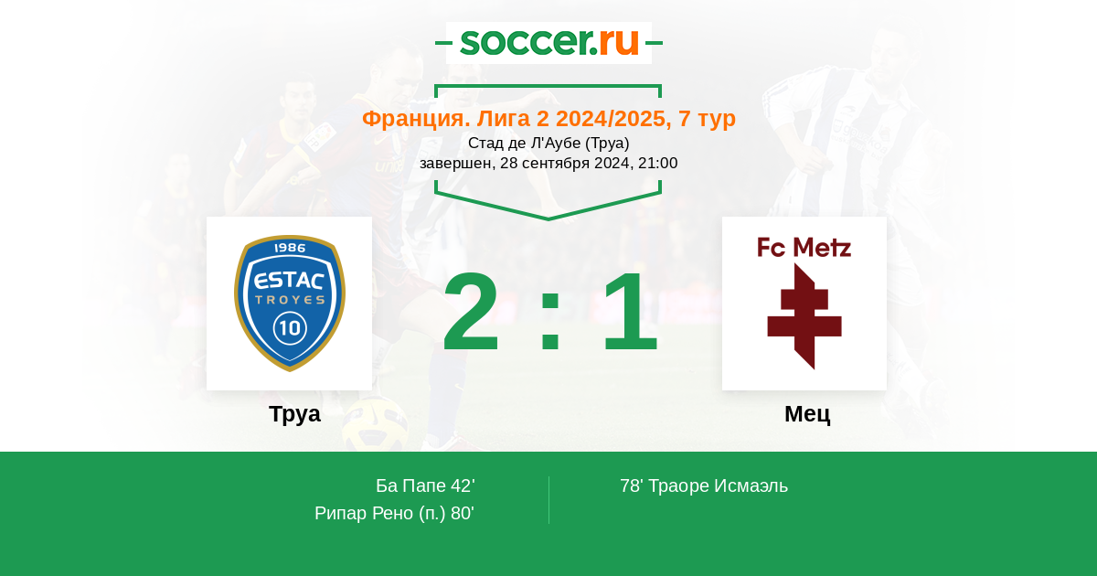 Мец | 34 | 18 | 11 | 5 | 10 | 64:34 | 65 |