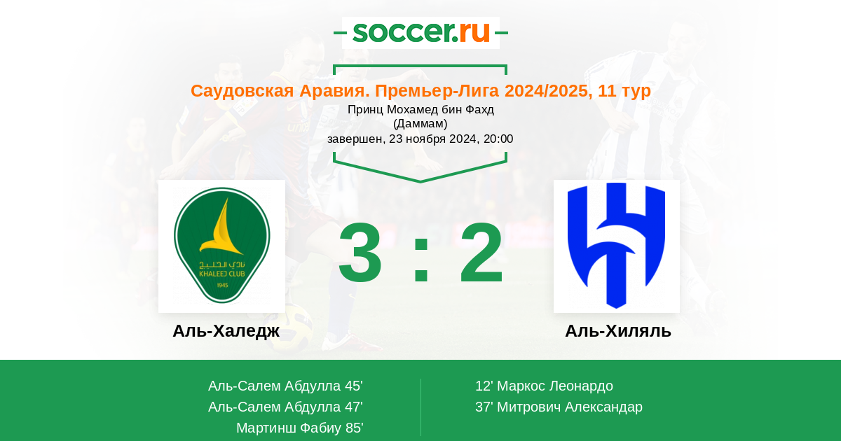 Аль-Халедж - Аль-Хиляль: обзор матча 23 ноября 2024