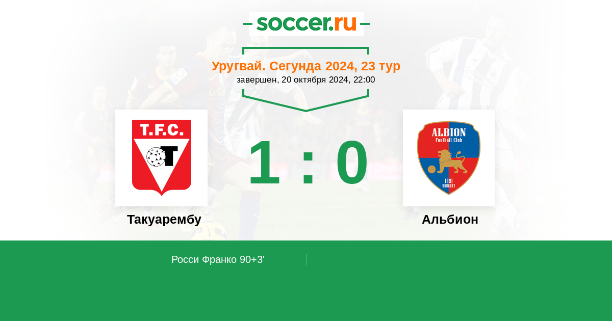 Такуарембу - Альбион: обзор матча 20 октября 2024