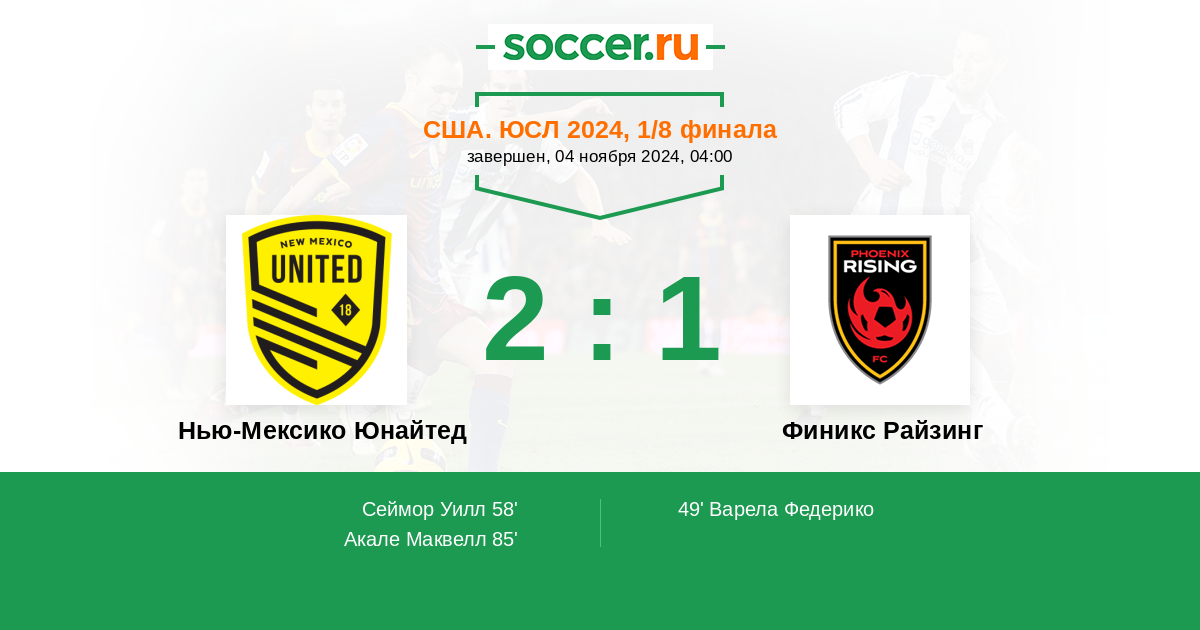 Нью-Мексико Юнайтед - Финикс Райзинг: обзор матча 4 ноября 2024