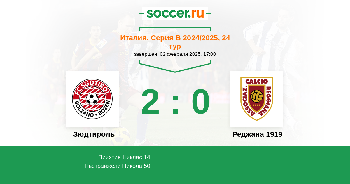 Зюдтироль - Реджана 1919: обзор матча 2 февраля 2025