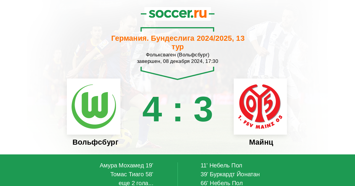 Вольфсбург - Майнц: обзор матча 8 декабря 2024