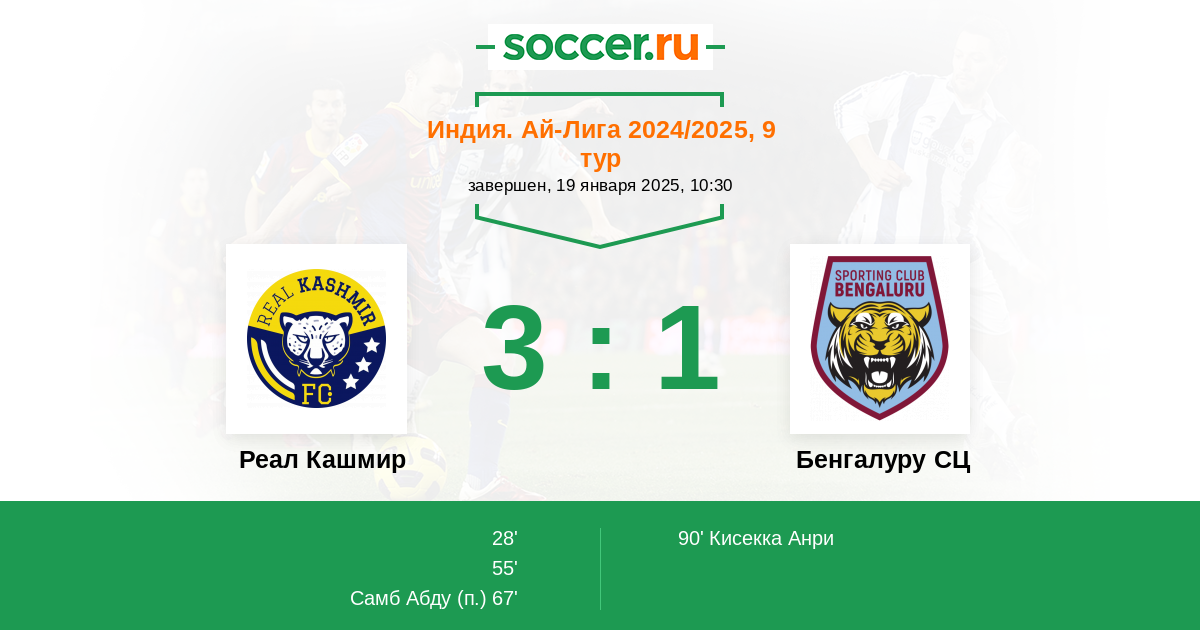 Реал Кашмир - Бенгалуру СЦ: обзор матча 19 января 2025