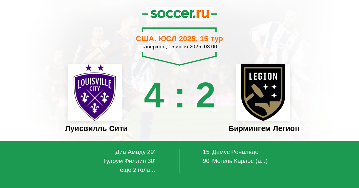 Луисвилль Сити - Бирмингем Легион: обзор матча 15 июня 2025