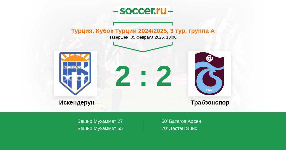 Трабзонспор | 3 | 2 | 1 | 0 | 1 | 10:4 | 7 |