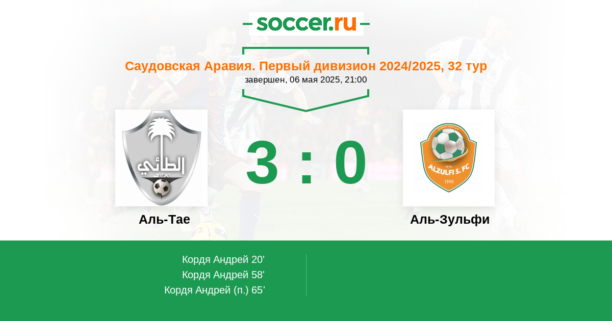 Аль-Тае - Аль-Зульфи: обзор матча 6 мая 2025