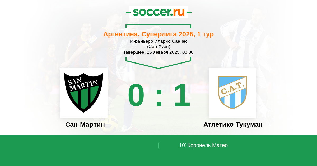 Сан-Мартин - Атлетико Тукуман: обзор матча 25 января 2025