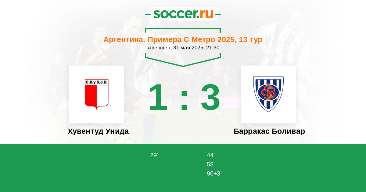 Хувентуд Унида - Барракас Боливар: обзор матча 31 мая 2025