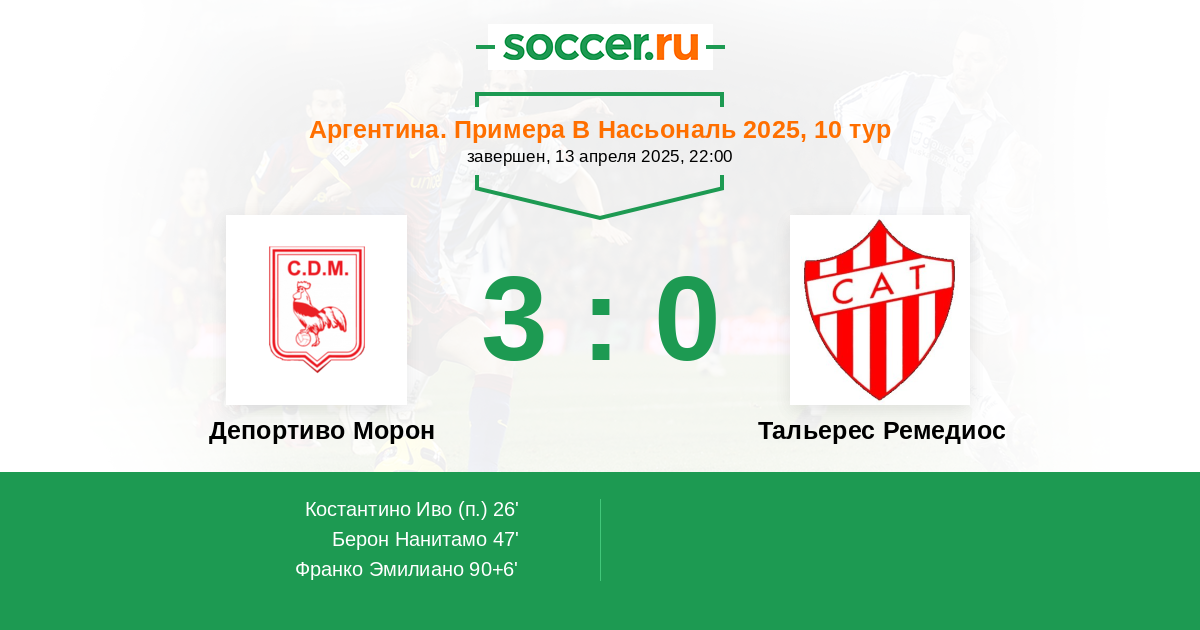 Депортиво Морон - Тальерес Ремедиос: обзор матча 13 апреля 2025
