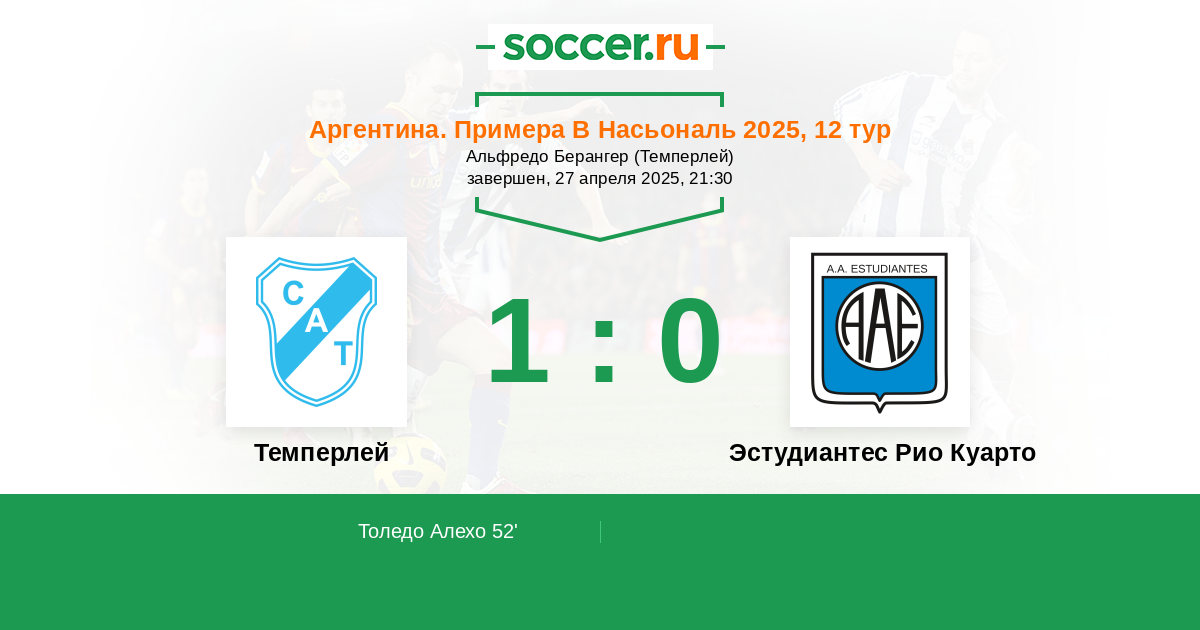 Темперлей - Эстудиантес Рио Куарто: обзор матча 27 апреля 2025