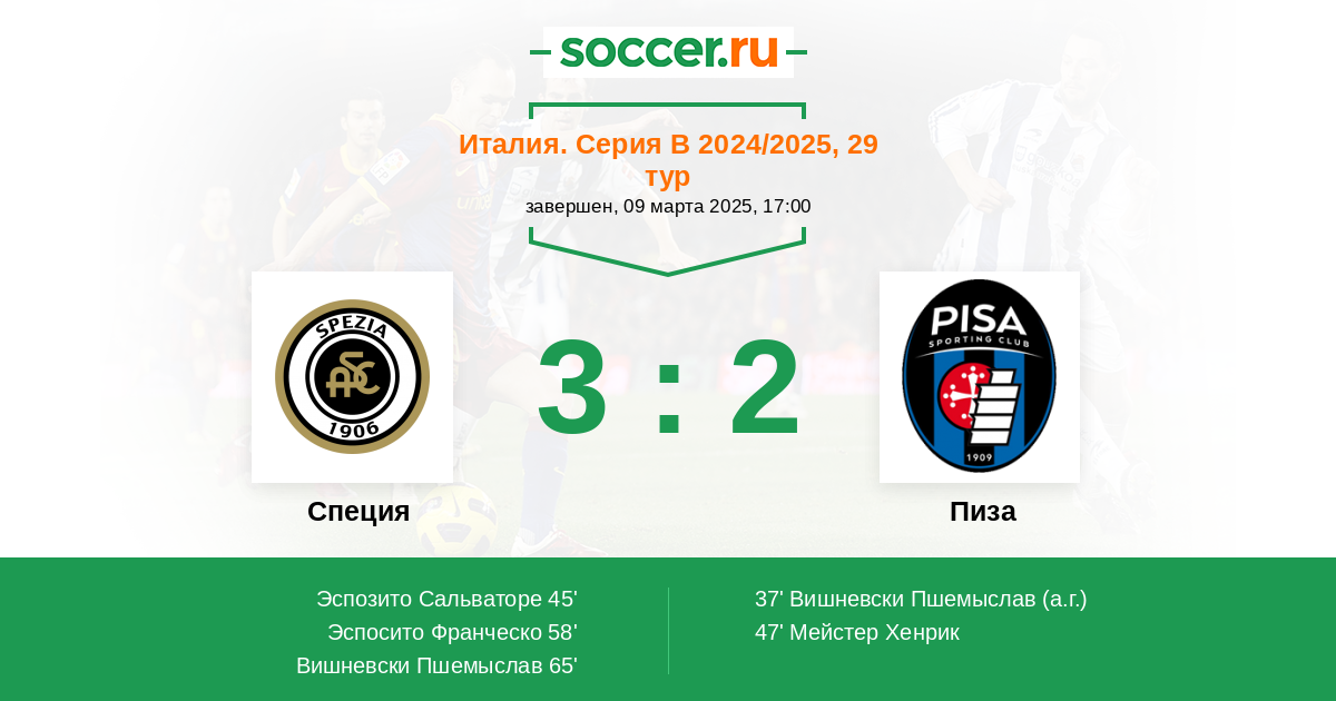 Специя - Пиза: обзор матча 9 марта 2025