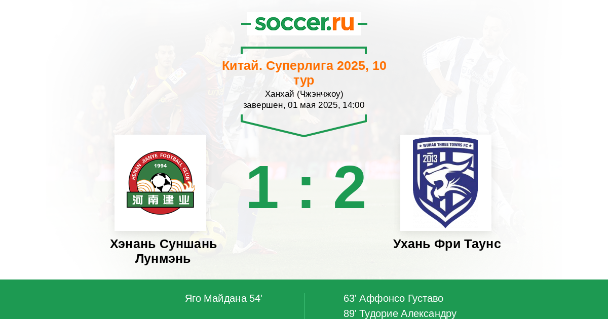 Хэнань Суншань Лунмэнь - Ухань Фри Таунс: обзор матча 1 мая 2025
