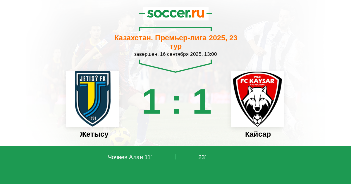 Жетысу - Кайсар: обзор матча 16 сентября 2025