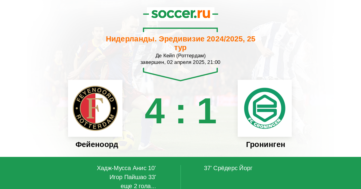 Фейеноорд - Гронинген: обзор матча 2 апреля 2025