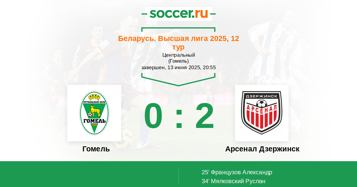 Гомель - Арсенал Дзержинск: обзор матча 13 июня 2025