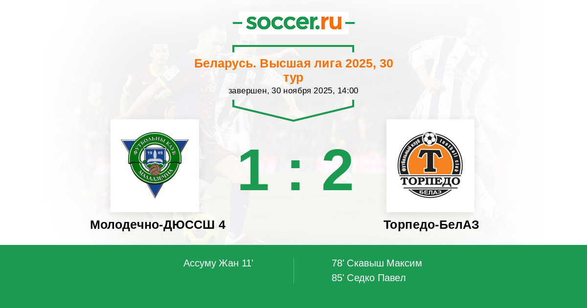 Молодечно-ДЮССШ 4 - Торпедо-БелАЗ: обзор матча 30 ноября 2025