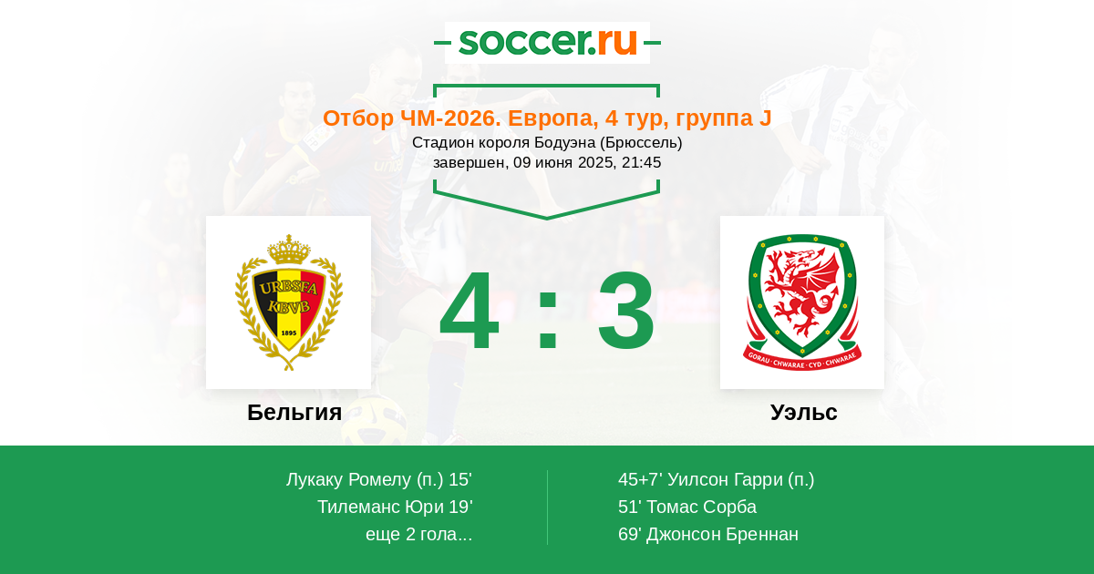 Бельгия - Уэльс: обзор матча 9 июня 2025