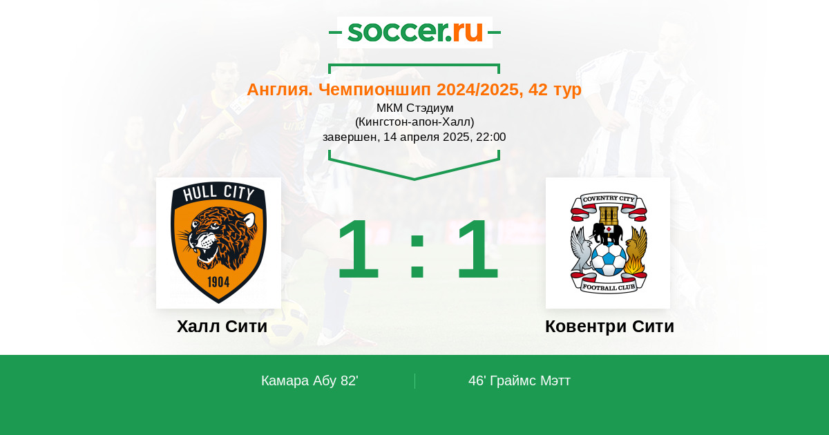 Халл Сити - Ковентри Сити: обзор матча 14 апреля 2025