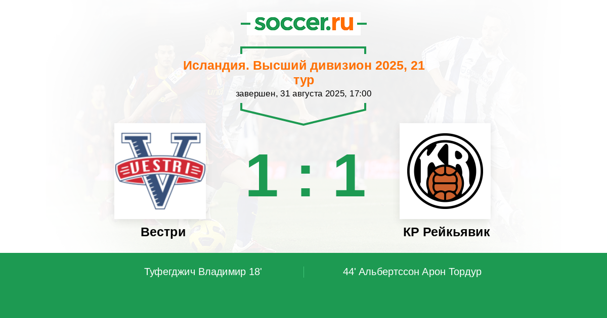 Вестри - КР Рейкьявик: обзор матча 31 августа 2025