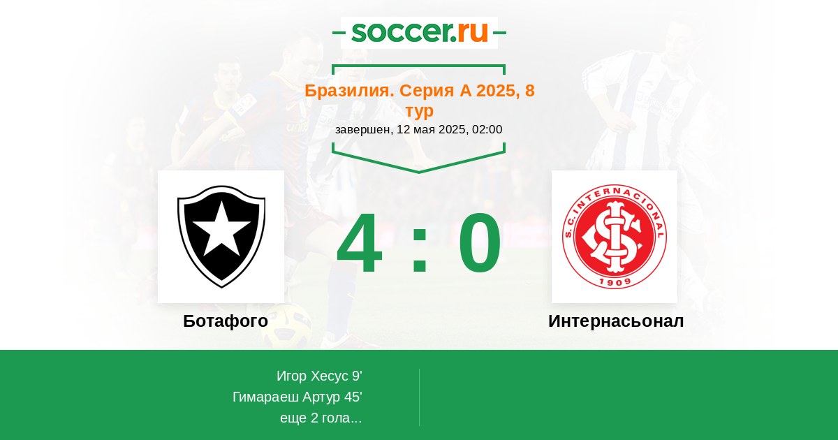 Ботафого - Интернасьонал: обзор матча 12 мая 2025