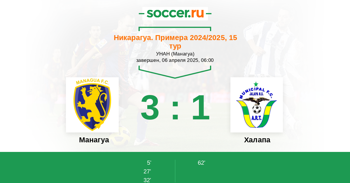 Манагуа | 18 | 11 | 3 | 4 | 9 | 31:14 | 36 |