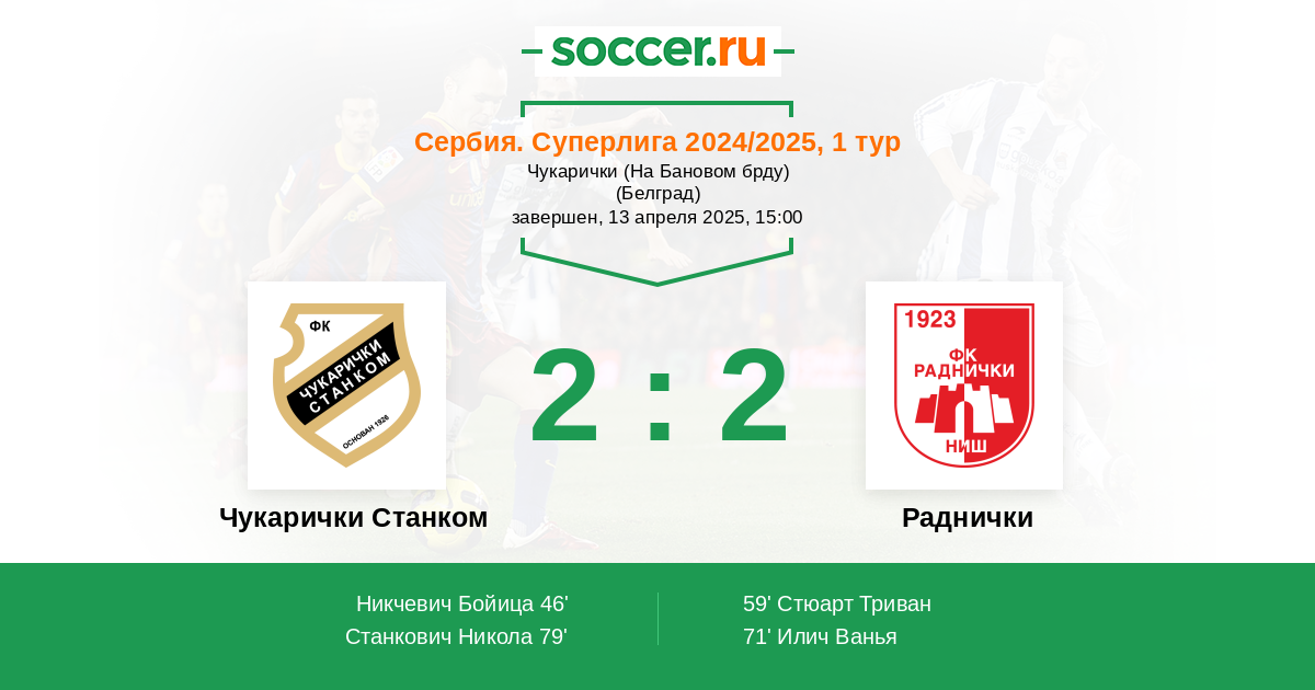 Чукарички Станком - Раднички: обзор матча 13 апреля 2025