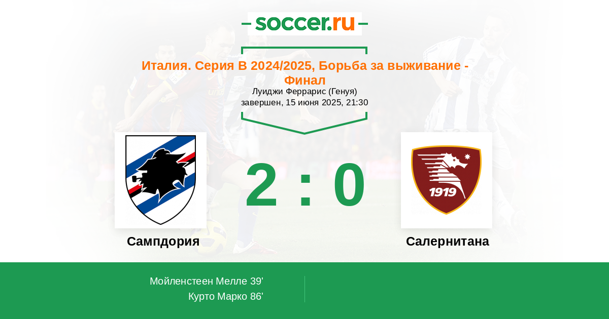 Сампдория - Салернитана: обзор матча 15 июня 2025
