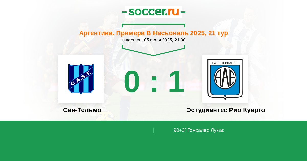 Сан-Тельмо - Эстудиантес Рио Куарто: обзор матча 5 июля 2025