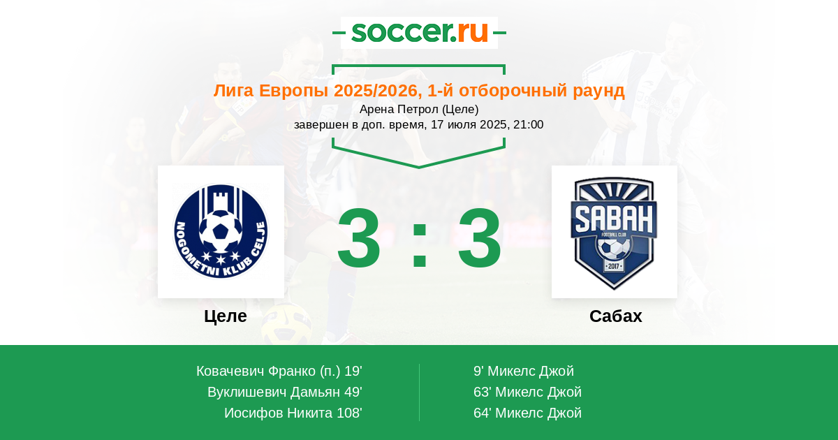 Целе - Сабах: обзор матча 17 июля 2025
